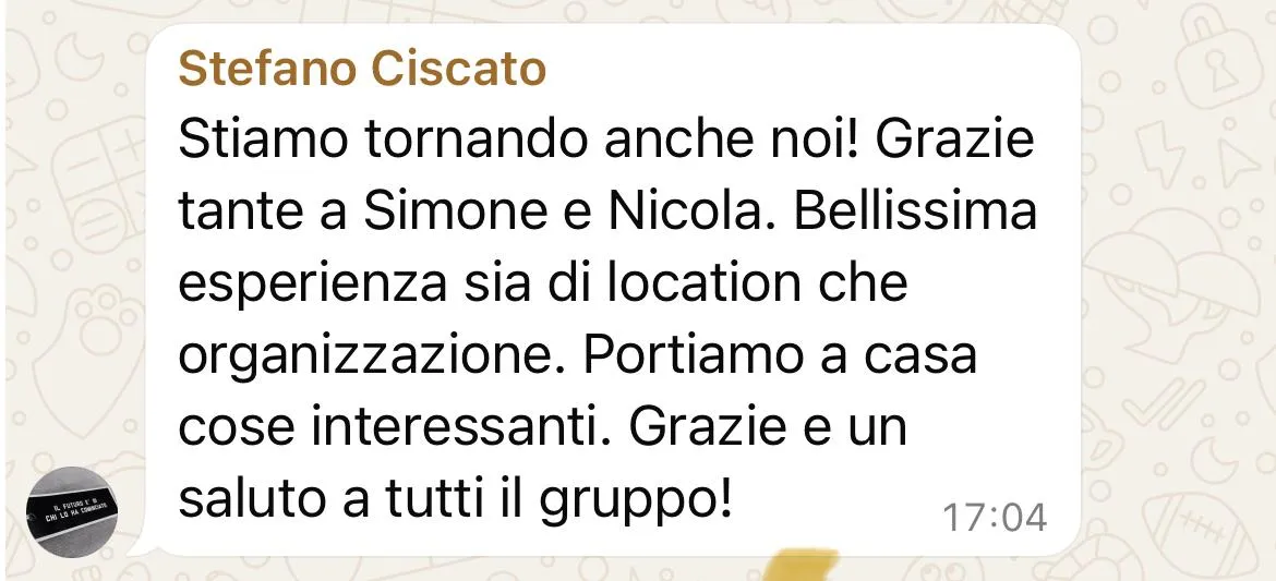 Arrivati nel primo pomeriggio ci sistemeremo in hotel e avremo la prima cena di networking tra i partecipanti. Un momento perfetto per iniziare a conoscere i colleghi con cui condividerai questa esperienza unica.