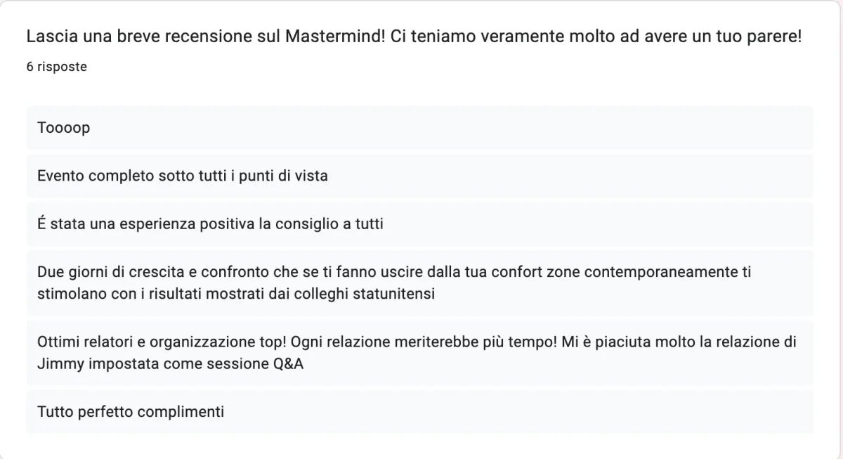 ✅ Sessione di mastermind esclusiva per il gruppo italiano.